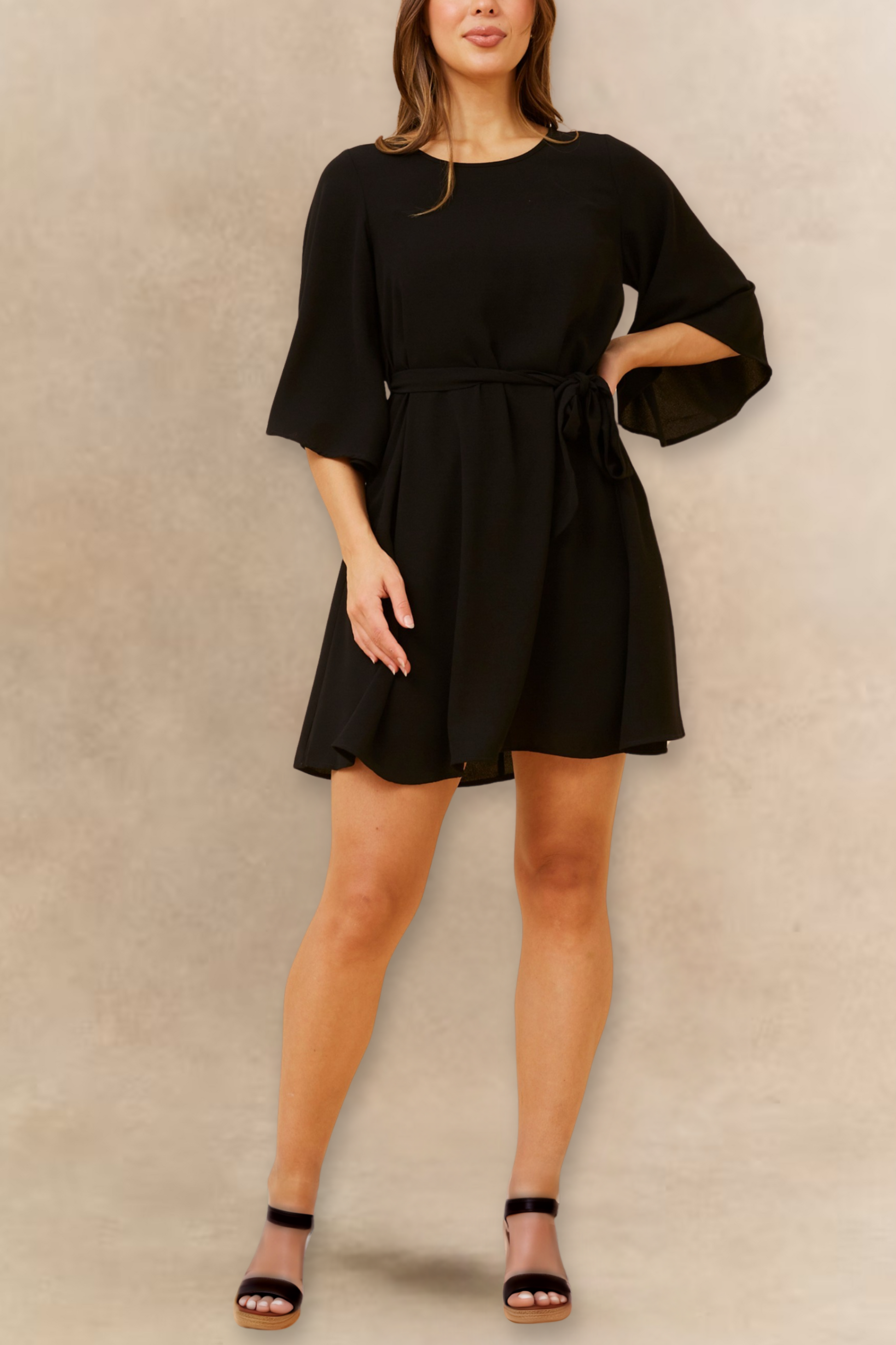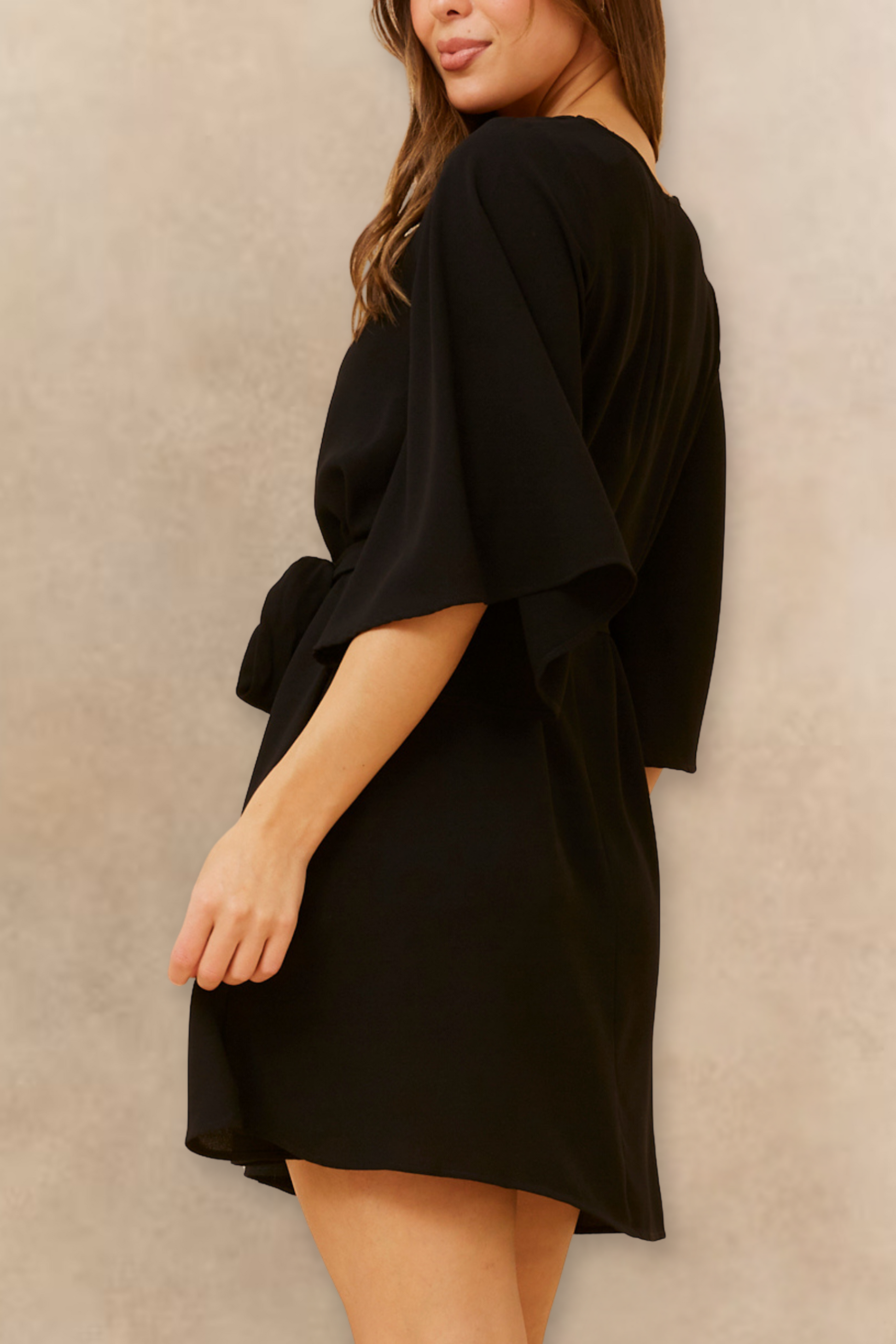 Effortless elegance meets everyday ease in the Jennifer dress, designed with flowy flared sleeves and a flattering self-tie waist. Crafted in a soft, fluid fabric, this versatile A-line silhouette cinches at the waist to create a perfectly feminine fit. Whether you’re heading to brunch, a special dinner, or just want a polished day-to-night look, Jennifer delivers timeless charm in your choice of classic black or bold rich red.