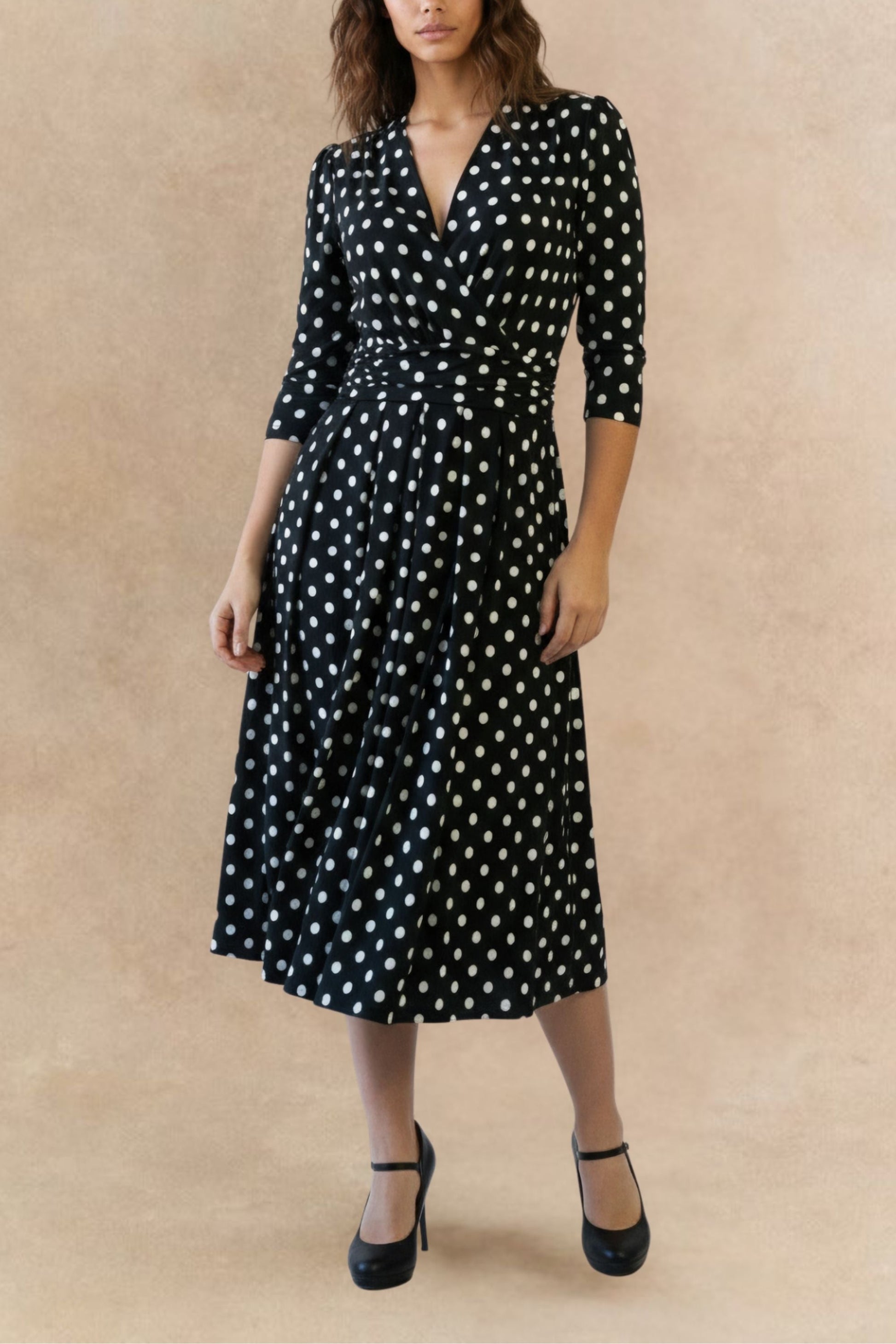 Evelyn Polka Dot Stretch Wrap Midi Dress