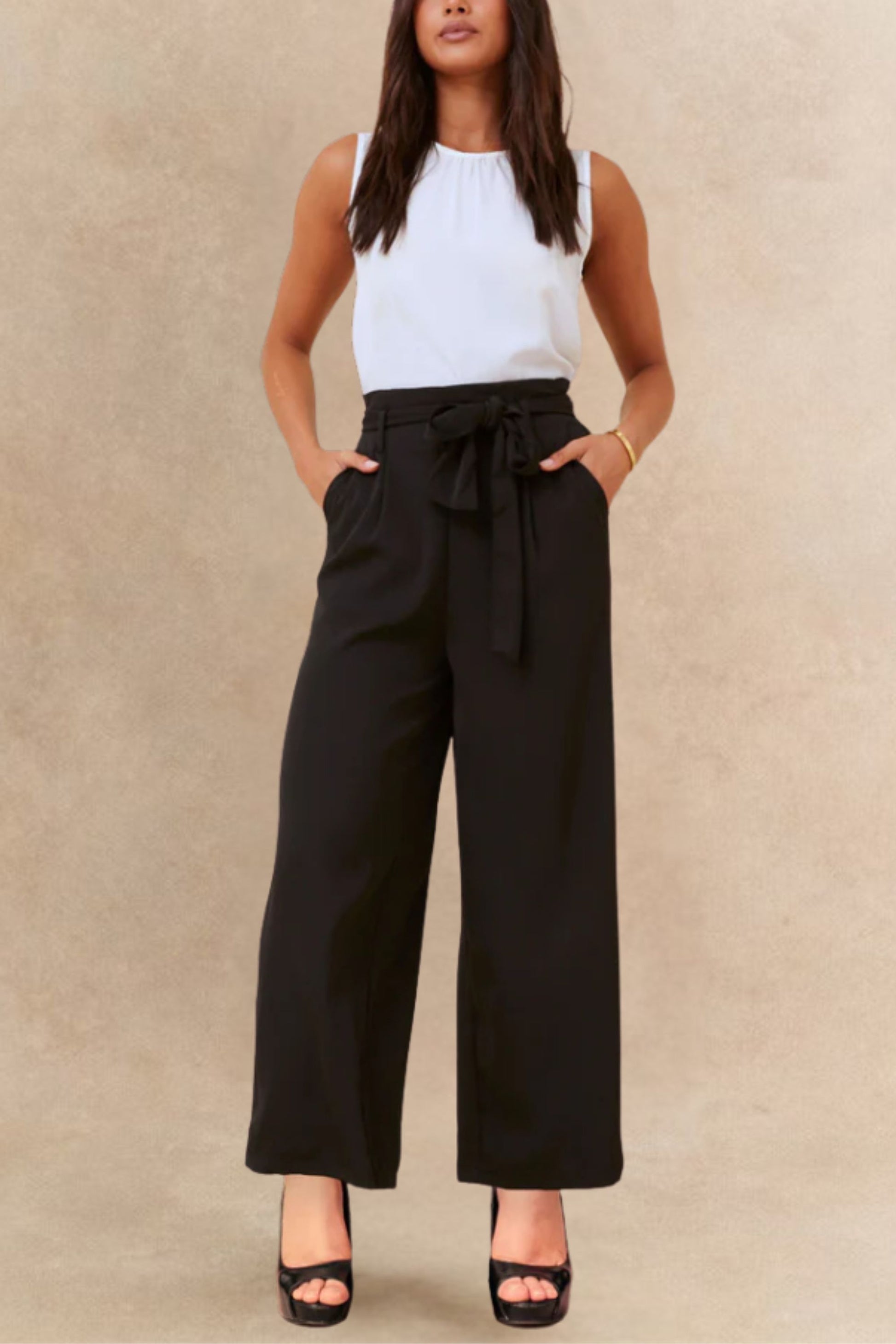 Alba Black Paperbag Pants Straight Leg Elastic Waistband