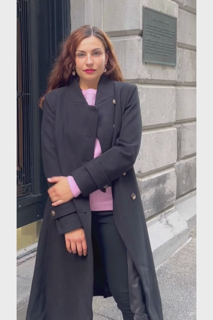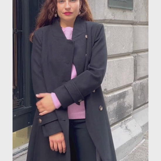 Elevate your winter wardrobe with the Harper Coat, a flawless blend of quality craftsmanship and sophisticated style. Crafted from premium fabric, this coat offers both comfort and a distinctive wow factor, highlighted by its unique side button closure. Its tailored fit and flared design beautifully accentuate your curves, creating a comfortably flattering silhouette for all body types. Finished with an officer collar, the Harper Coat is a versatile piece that pairs effortlessly with elegant dresses or casual jeans, making it a best seller