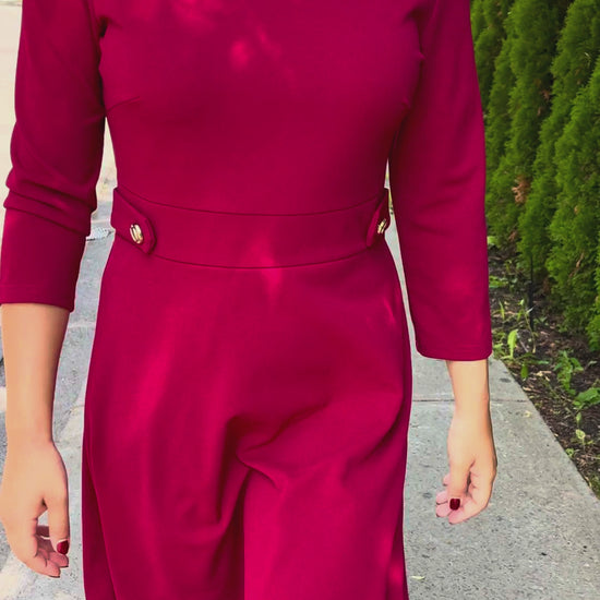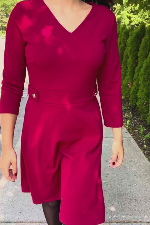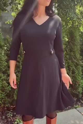 The Nathalie dress redefines understated elegance with its clean A-line cut and subtle tailoring. Available in both classic black and bold red, this versatile piece features a flattering V-neckline, a defined waist with chic gold button accents, and a soft, stretch-infused fabric that ensures comfort and structure. Whether you're heading to the office or out for dinner, the Nathalie dress is your perfect day-to-night companion.