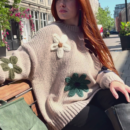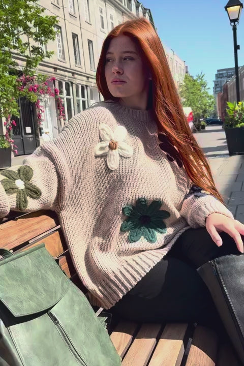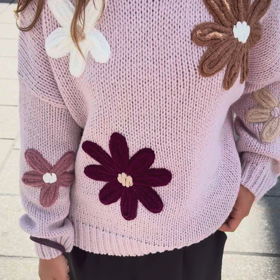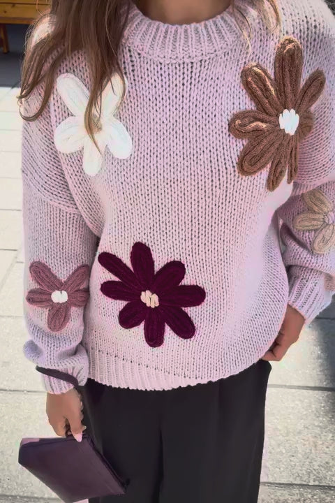The Tamara sweater brings cozy comfort and playful charm together in a chunky knit design. Available in soft beige and blush pink, this relaxed-fit piece is beautifully detailed with oversized, multicolor embroidered flowers that add a cheerful, artisanal touch. With its crew neckline, dropped shoulders, Tamara is an easy go-to for effortless layering and standout everyday style.